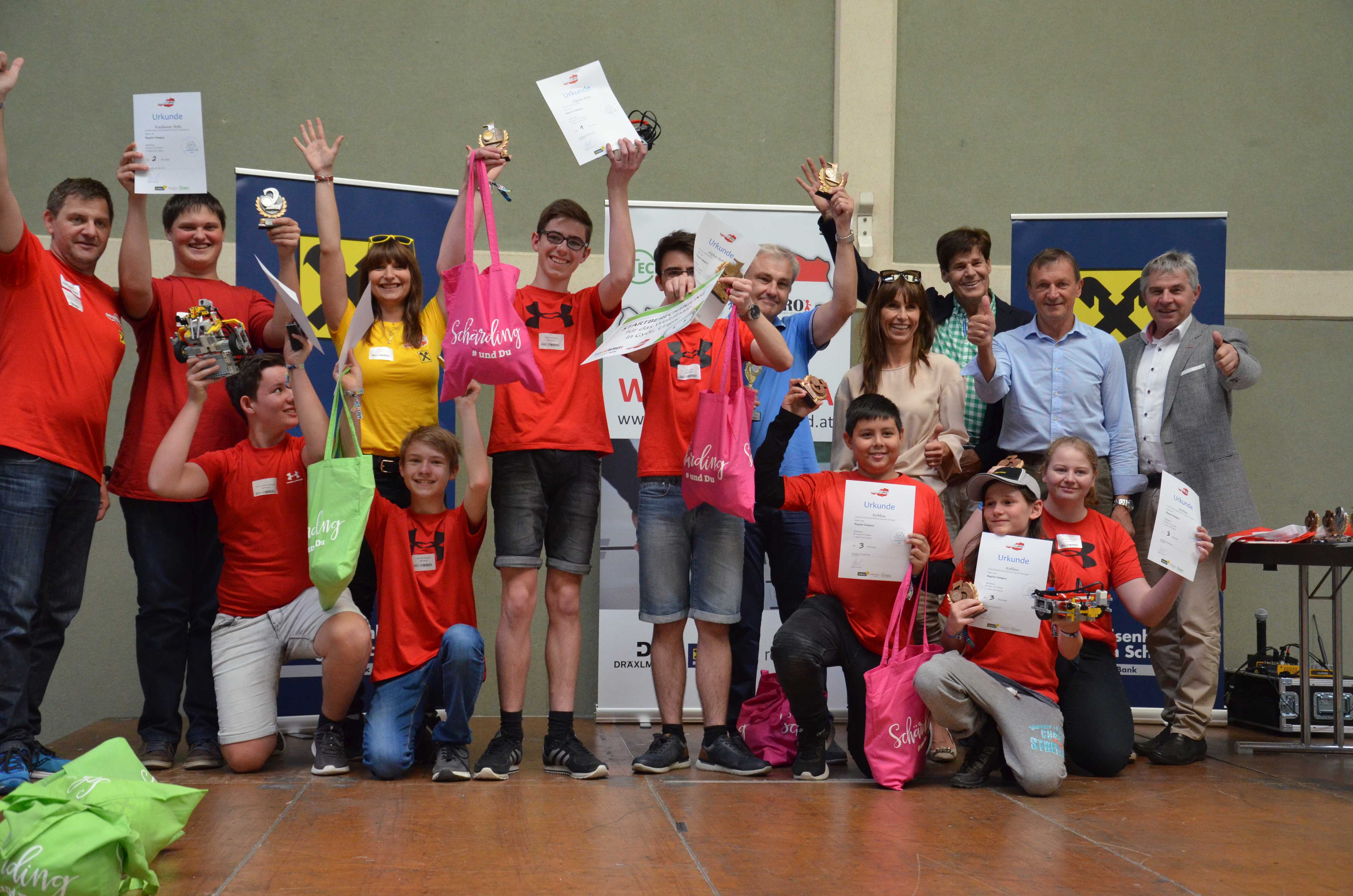 Die österreichischen Teams wurden von Dr. Alois Ellmer, Bezirksstellenleiter der WKO Schärding, Ing. Franz Angerer, Bürgermeister der Stadtgemeinde Schärding, sowie von Eva Panholzer Schärdings Bezirksschulchefin und DI (FH) Herbert Ibinger, Geschäftsleitung Techno-Z Braunau/TGZ Schärding und Leitung der World Robot Olympiad Austria, geehrt. Auch Matthias Breidt, Kfm. Geschäftsleiter der Bankstelle Schärding gratulierte den Schülerinnen und Schülern zu ihren Erfolgen. Für die beiden besten Teams geht es nun von 8. bis 10. November 2019 zum WRO-Weltfinale nach Ungarn.